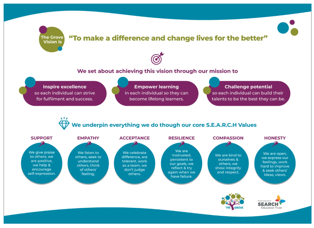 - The principles and core values we hold are very much part of the SEARCH Education Trust values. Our values are deep rooted within The Grove community and are key to realising our vision;